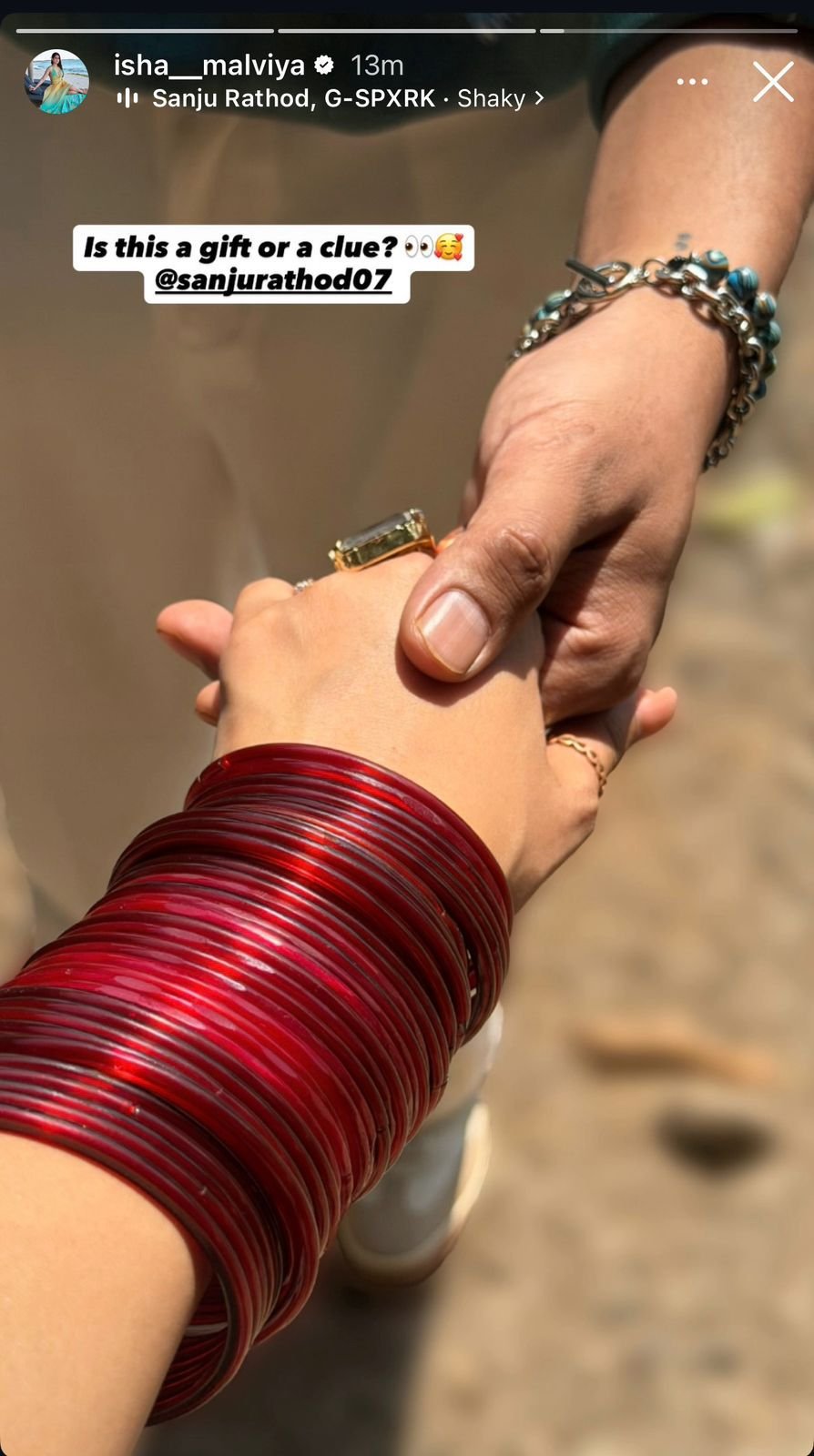 Adding fuel to the excitement, Isha recently shared a cryptic story — a girl adorned with red bangles and a boy gently holding her hand. A subtle visual, but enough to send fans into a frenzy, decoding it as a possible hint.