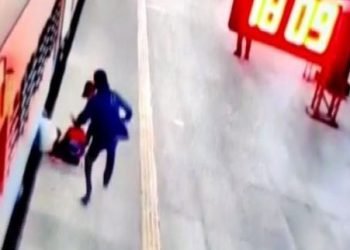 क्लर्क ने महिला को ट्रेन के नीचे आने से बचाया