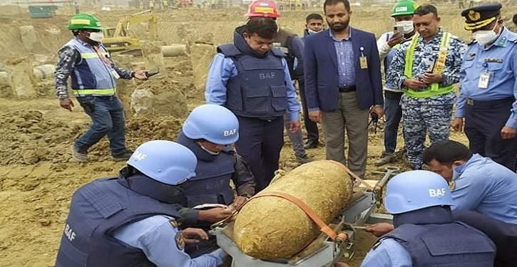 समाचार एजेंसी सिन्हुआ की रिपोर्ट के अनुसार, बांग्लादेश सशस्त्र बलों के मीडिया और समाचार एजेंसी आईएसपीआर ने एक बयान में कहा कि श्रमिकों ने सबसे पहले सिलेंडर जैसे बम को बुधवार सुबह जमीन में लगभग तीन मीटर गहरा देखा।