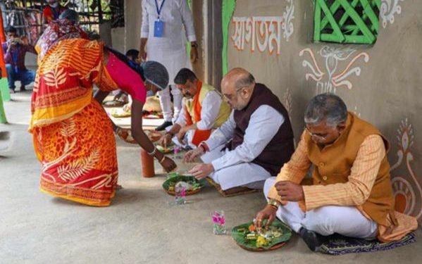 केंद्रीय गृह मंत्री अमित शाह ने शनिवार को राज्य में विधानसभा चुनाव से पहले कृषकों के साथ संबंधों को मजबूत करने की अपनी कवायद के हिस्से के रूप में पश्चिम बंगाल के पश्चिम मेदिनीपुर जिले में एक किसान के घर पर दोपहर का भोजन किया ।